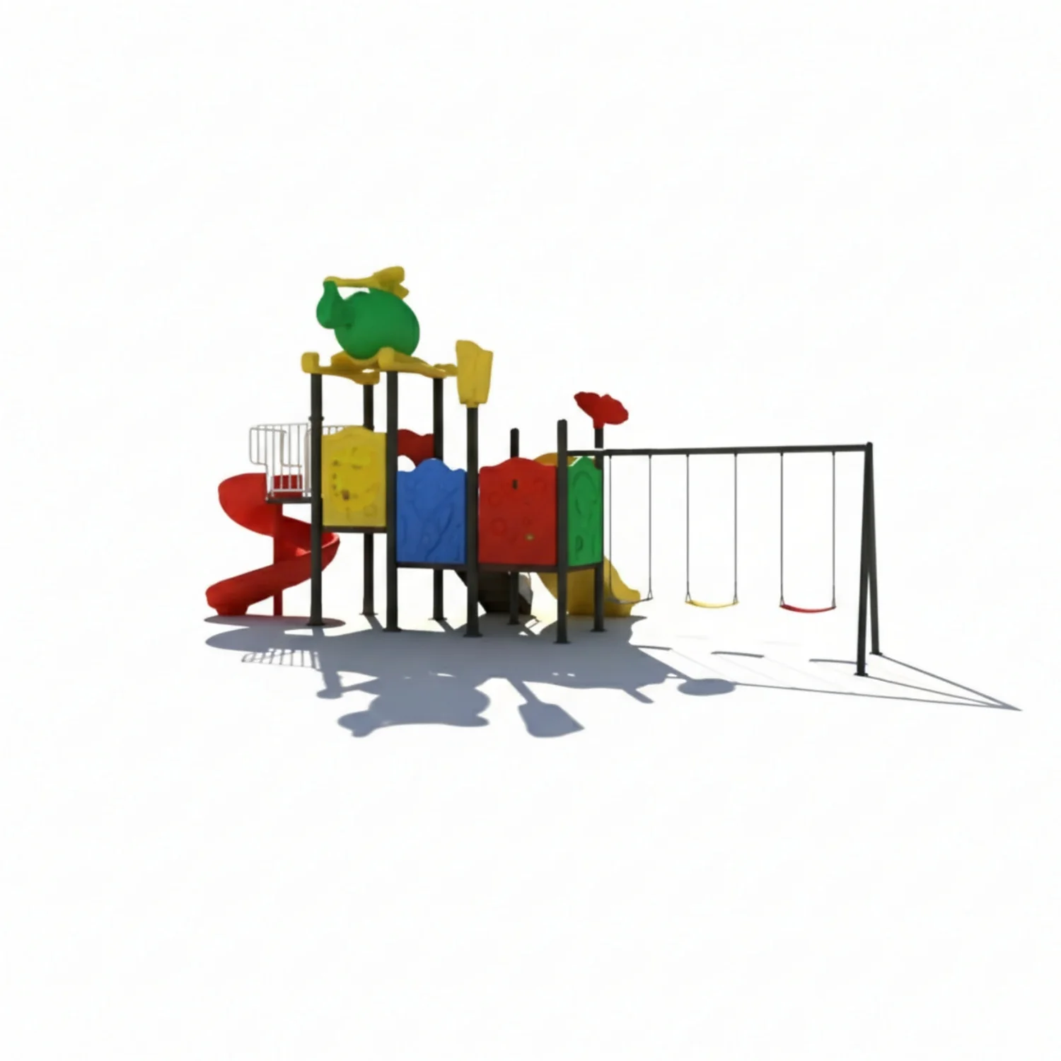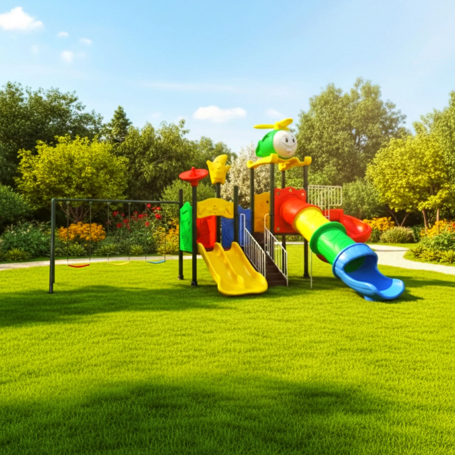 - تعزيز التفاعل الاجتماعي واللعب التعاوني من خلال المراجيح والزحاليق المتعددة.