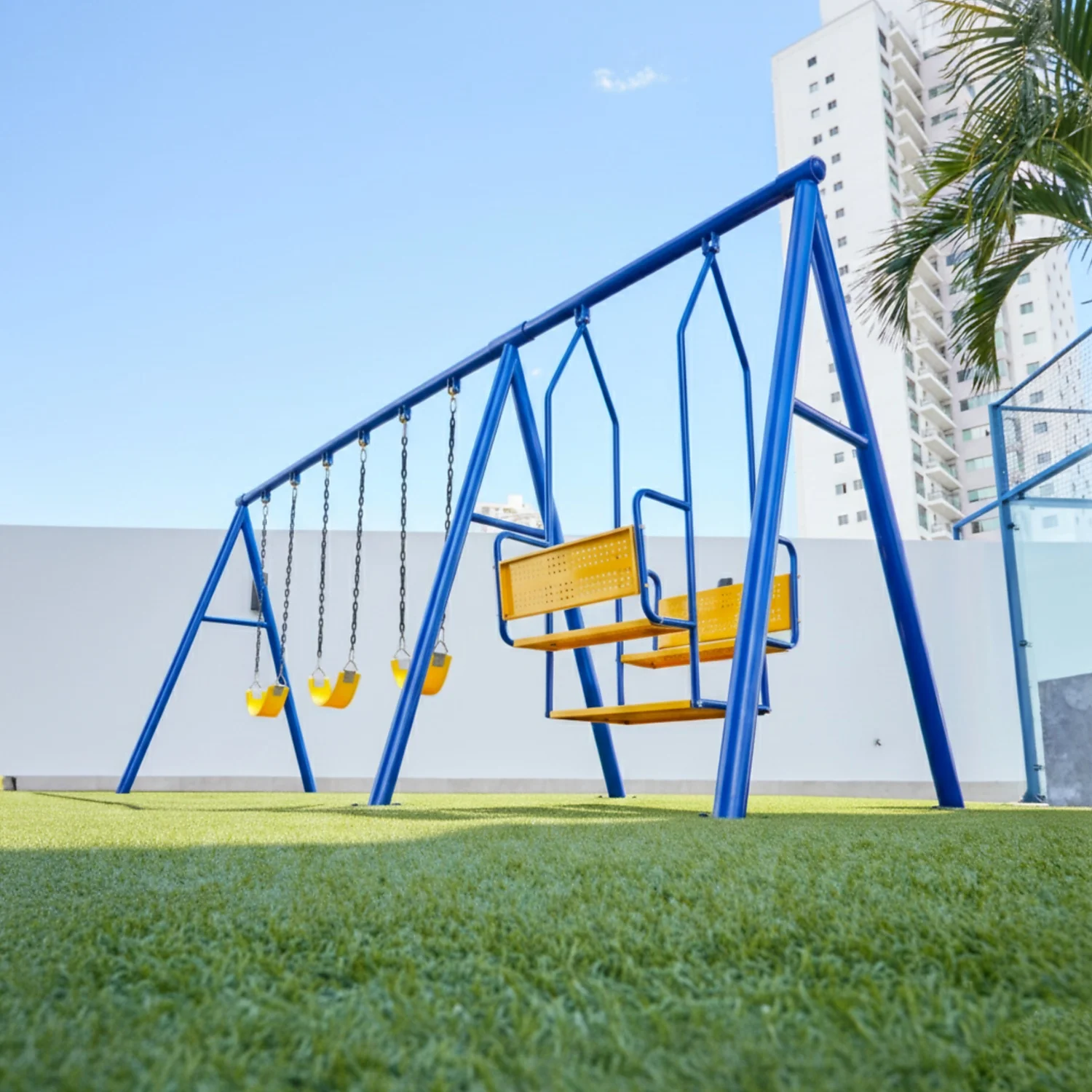 - ثلاثة مقاعد مراجيح: توفر مساحة كافية للعب المتزامن، مع ضمان الأمان الكامل لكل طفل.