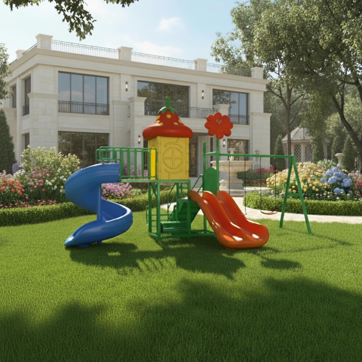 - ثلاثة مراجيح: توفر فرصاً للعب الجماعي والتفاعل الاجتماعي بين الأصدقاء والأشقاء.