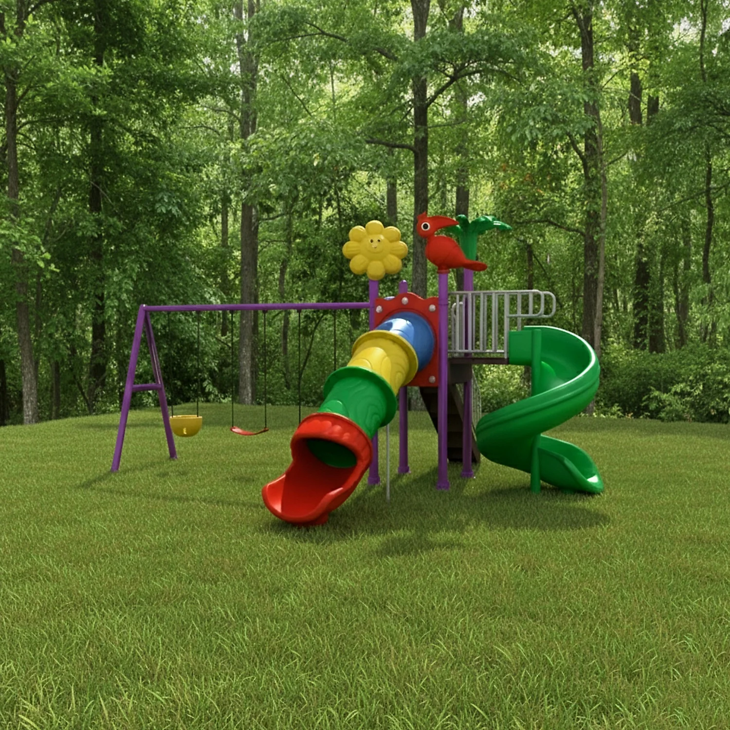امنح أطفالك تجربة لعب لا تُنسى مع مجموعة زحاليق ومراجيح متكاملة صغيرة الحجم،