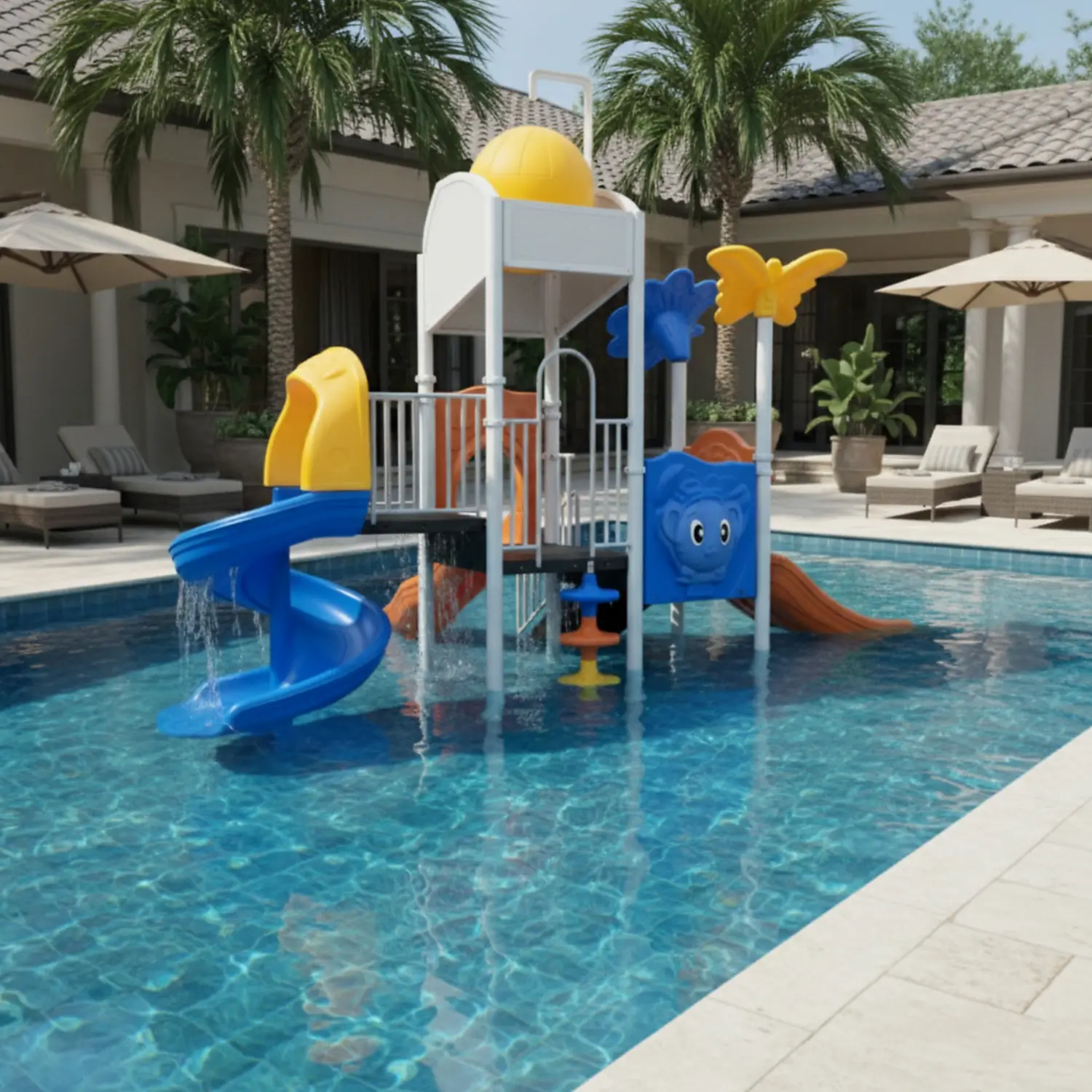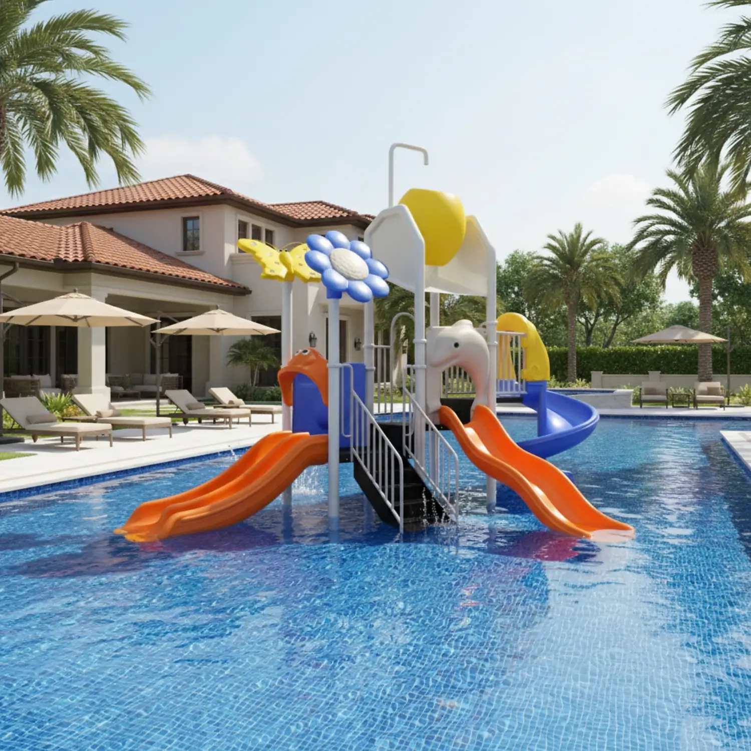 متعة وآمان عالي لمسبح أطفالك مع هذا اللعبة التي تضم مجموعة زحاليق مائية متوسطة الحجم
