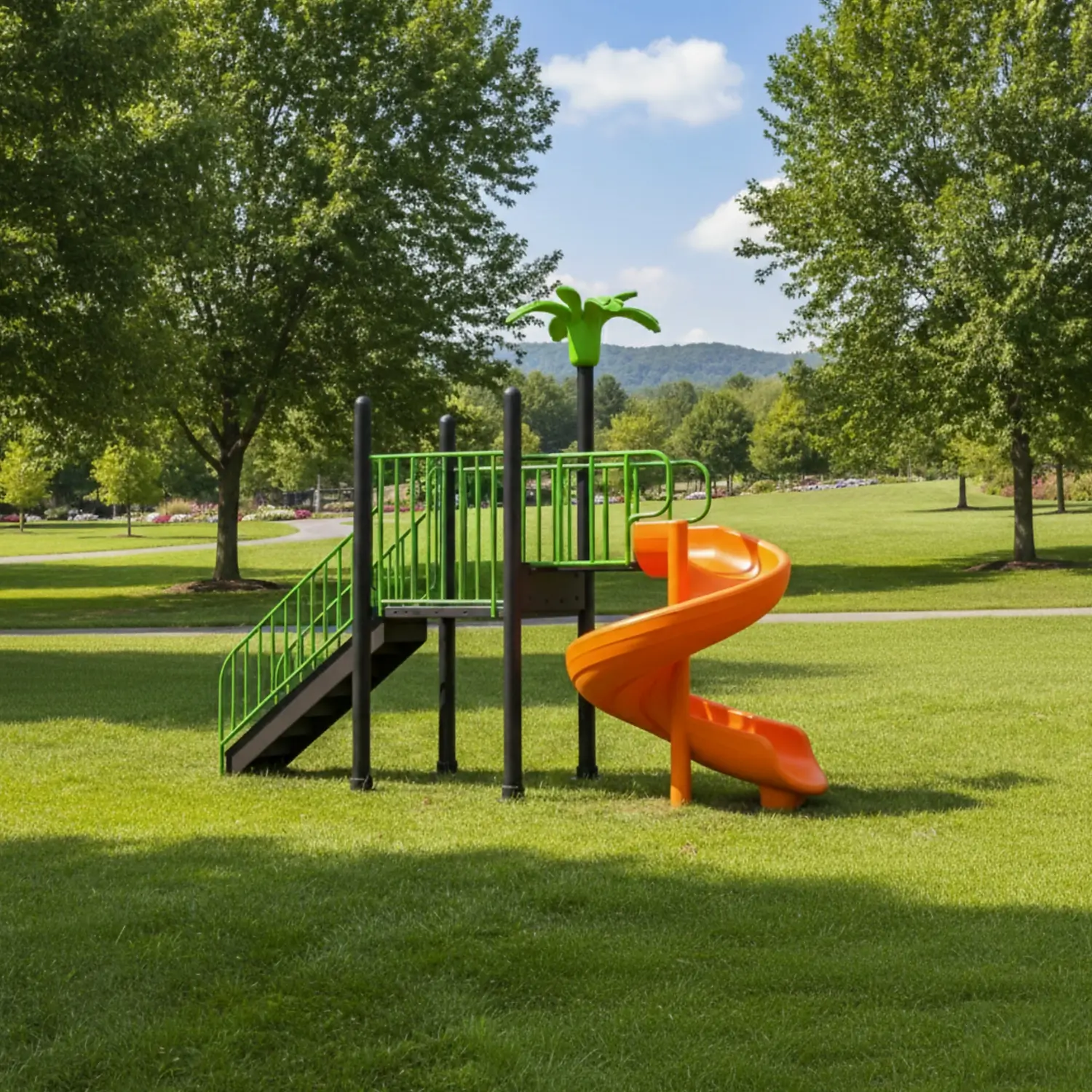- ألوان زاهية: تضفي أجواء مرحة وتشجع الأطفال على اللعب المستمر في الحديقة.