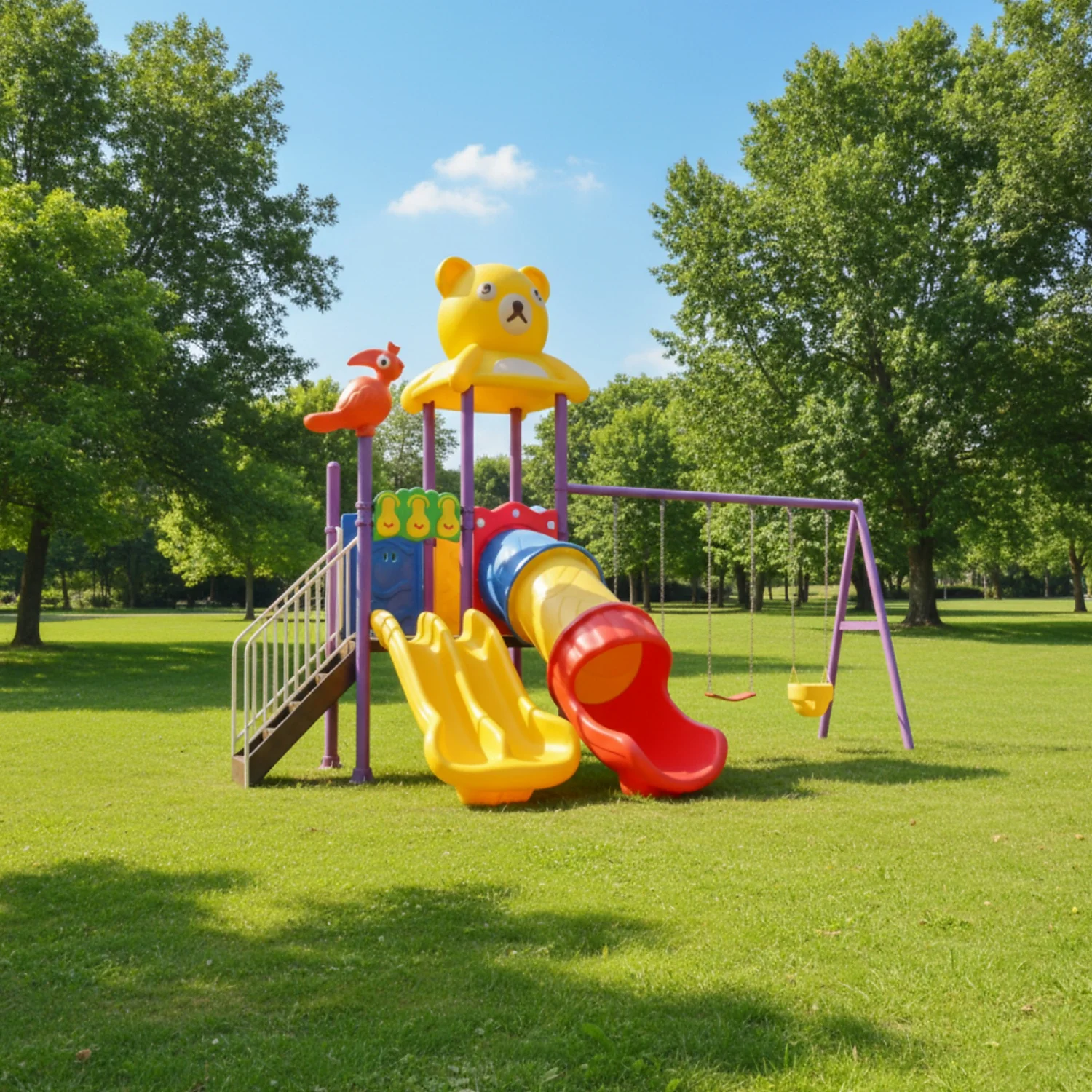 - ألوان جذابة ومشرقة: تحفز الأطفال على اللعب والاستكشاف وتعزز الجاذبية البصرية للحديقة.